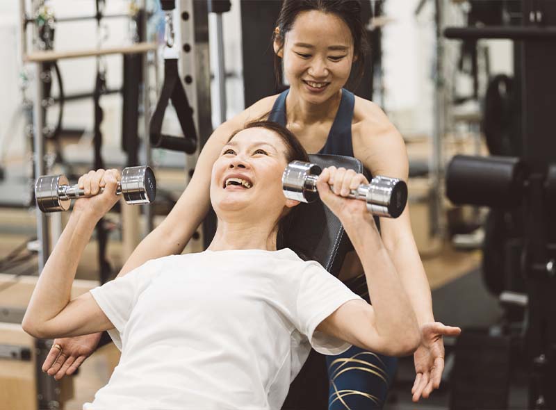 生活習慣病やメタボリック症候群の予防・改善から、脳梗塞や心疾患、パーキンソン病などのリハビリ運動まで、医療機関と連携し、定期的な医学的検査結果をもとに安全にトレーニングを行います。