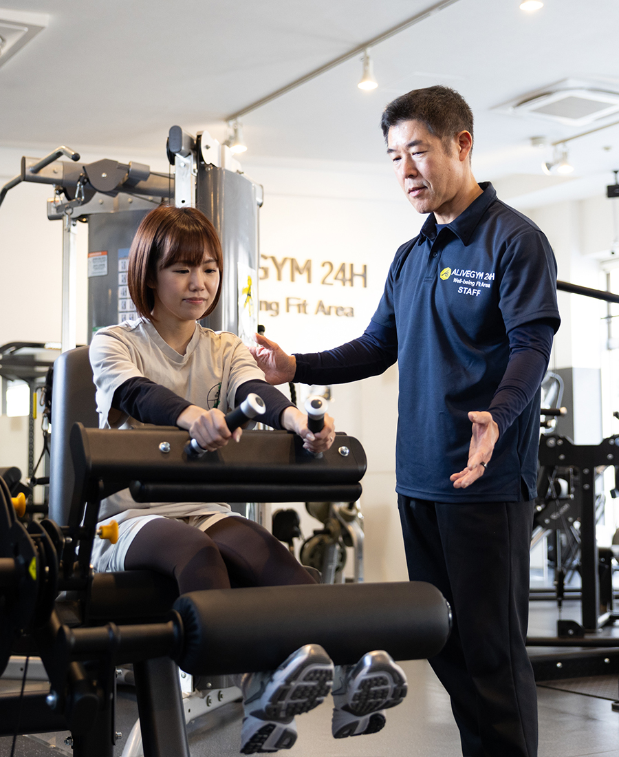当ジムには、健康運動指導士が在籍しており、一人ひとりに合わせた安心のパーソナル指導を提供しています。